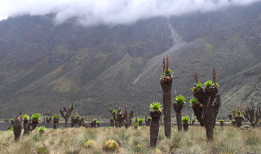 From John Matte Hut, the trail drops down to cross the Bujuku River and enters the Lower Bigo Bog, the home of giant lobelias. Will enjoy the beautiful but hypnotising boardwalk through the open valley. Transition through a steep forested section to the upper Bigo bog which gives way to Lake Bujuku, with views of Mount Baker to the south and Mount Stanley to the west. This 4-5 hour hike ends at Bujuku hut. Bujuku is also a launchpad for climbing Mount Speke. Overnight at Bujuku camp